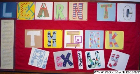 ![]() We have been studying Habits of Mind. This bulletin board was the grand finale of an activity to put Flexible thinking into practice. Students had to unscramble the letters (which were just outlined in black ink) to figure out what the phrase was. Then the students were to decorate "their letter" with flexible thinking. They could do anything with the construction paper that was provided except use a writing utensil of any kind. The students absolutely loved the exercise and truly exercised flexible thinking. The hands on aspect was especially enjoyed and the enthusiasm for putting the bulletin board up was very high.