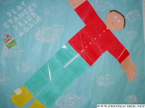 ![]() My third grade class participates in a South Carolina State-Wide Flat Stanley Project. I read Flat Stanley by Jeff Brown to my class. Students made their own Flat Stanleys to send to other third grade classes in South Carolina. The Flat Stanleys took with them historical information about our town/community that the students had learned through research. While visiting the other third grade classes, the Flat Stanleys will learn about the history of the towns and communities that they visit, and when they return to our school, they will bring that information back. It's a great way for the students to learn about the history of SC. Each child wrote a letter telling about themselves, as well as, our town's history. Some wrote about famous historical figures, historical monuments and landmarks, the origins of the town, civil war battles fought here, natural disasters, etc. I wanted to find a unique way to display the project, so a room parent copied their letters onto different colored paper to resemble the Flat Stanley on Jeff Brown's book. His entire body, with the exception of his head, was composed of student letters. His head had brown woven string for hair and real buttons were glued onto his shirt. He was positioned in a 3-D manner as if he were a kite flying in the air. Kite string was used to emphasize this.