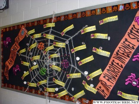![]() For this bulletin board the students were asked to find websites that they liked visiting. The websites had to be related to specific areas of the curriculum. Once the students found the sites they enjoyed we then went about selecting graphics to go with our theme. They chose the spider and then we came up with thle title for our board. The students printed their sites using a template and attached a little spider web to the site explaining what curriculum area it covered. I purchased a large Halloween spider web and stapled it to the bulletin board we made an banner and as you can see from the photos it all came together quite nicely and colorfully. What a wonderful experience this was.