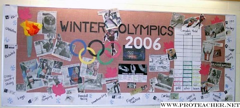 ![]() I was so impressed with this bulletin board design when I saw it. It is perfect to keep the students in tune with what is happening in the media. As our country won medals we kept a mathematical graph of different medals we were winning in the bronze, silver and gold categories. It is somewhat of an interactive board that continues to get updated over the olympic winter games. The torch was made from a brown construction paper that was formed into a cone shape. It was stapled onto the bulletin board then yellow, orange and red tissue paper was arranged into it so that it looked like the olymip torch. [Submitted by Sherry McNear with permission of Charron Sippola].
