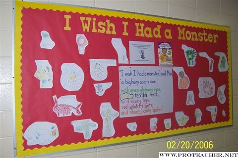 ![]() The Kindergarten students in my classroom have been working on the comprehension strategy of Visualizing in our Shared Reading of the big book, I Wish I Had a Monster, by Judy Waite. We have discussed that good readers "paint a picture in their minds" while reading or listening to a story. For this particular Shared Reading, I read the big book to the students without showing them the pictures. The students were then asked to visualize what they thought the monster looked like by listening to the repetition in the book: "I wish I had a monster," said Max, "a big, hairy scary one, with green gleaming eyes, yellow terrible teeth, wild waving legs, red splotchy spots, and sharp, pointy spikes." The pictures that are displayed on the bulletin board are the pictures the students drew after returning to their seats from listening to the big book.