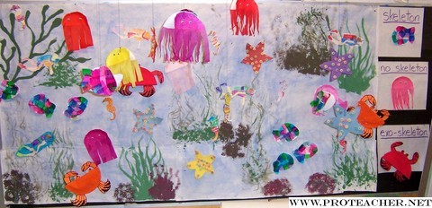 ![]() Welcome to our underwater world here in 1P. We are working on our ocean unit and the students have created five ocean critters to hang on our classroom bulletin board, around the room on string, and in the hallway on our wall display. The children are learning about ocean animals that have a skeleton, exo-skeleton, or no skeleton at all. They love this unit and of all our bulletin boards this is the one they get into the most. We have shells, starfish, sand dollars and ocean underwater pictures on the science table in front of the display. The students take a lot of pride in their work. I hand painted the background and the children make all the rest. We use everything from paper plates for the crabs, to construction paper and fruit loop cereal for the starfish, paper plate halves and tissue paper for the jellyfish and paper and glitter for the sea horses. As we complete an animal we read about it and explore it on the internet. As a conclusion for the unit the children do a report and give a presentation on an animal they find interesting found in the ocean. The "1P Pride" (our classroom nickname) hope you enjoy our ocean underwater world.
