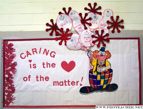 ![]() Our school-wide CHARACTER COUNTS! Program highlighted 'Caring'. Each month, assemblies introduce and expand on the meaning of the character focus; and this bulletin board is in a prominent place in the cafeteria. In the assembly, a 'caring clown' (which happened to be yours truly) was featured in a skit which emphasized ways to show caring that did not involved 'buying' things; i.e. helping others, raking leaves, reading to someone, smiling. Students traced their hands in classes and some of them are featured on the left of the bulletin board which noted ways they demonstrated caring hearts with their 'caring hands'.