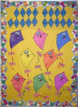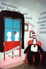 Bulletin Boards By: Lori 1. You could read some of the Just So Stories by Rudyard Kipling like How the Leopard Got Its Spots and then allow the children to write their own Just So Stories on animal shaped cutouts. A clever title I have see is How the Creatures Got Their Features. 2. We have made a Keeping Quilt Bulletin Board for Patricia Polacco's Keeping Quilt. Each student designs their quilt block and then you put them together on the bulletin board. 3. For Wilma Unlimited by Kathleen Krull-- make page size running shoe shapes. I used my clip art program. I made a running shoe glyph for Wilma with pictures representing events in her life like small green dots labeled with the illnesses she had as a child, what she weighed at birth on a baby scale, calendar page miniatures marked with birth and death dates, a heart for her goal in 1960 -- to win 3 Olympic Gold Medals, a cut out in the shape of Tennessee for the state where she was born, her family birth order -20th of 22 children. Each child does a running shoe glyph for themselves. I put these up around the room since they were too big for one bulletin board. We used all the information though to graph data for our class which I did put on the bulletin board for our open house -- for example range of birth weights, month with the most birthdays, etc. The shoes look neat around the top of the room -- looks like someone has run around the room. I got this idea from a book called Feisty Females. 4. I have used this with several books -- Make a matching game -- like concentration using events from the book and icons from the book. For example for The Lion, Witch and Wardrobe. I made "doors" by hanging one of those science fair boards on a bulletin board so that the ends could swing open and shut. I decorated the outside of the swinging ends so that they looked like the doors to an armoire. Inside I hung cutouts shaped like various clothes on the top rack. These "clothes" would swing aside to reveal clues about events in the book. On the bottom rack other clothes would reveal a match to the items on the top rack. I numbered my top rack and lettered the items on the bottom. Students could complete an answer sheet for extra credit points -- 1 point per correct answer. I have used the same concept with other books -- Train cars on a winding track for The Boxcar children in younger grades. A replica of a "tree house" where I would change the question cutouts each week for a 4 week Magic Tree House unit for second graders one summer. Dinosaurs for Dinosaurs before Dark, Sarcophagi for Mummies in the Morning, etc. Another one that was a hit was the Magic School bus. 4. If you have a travel book you like -- I used How to Make an Apple Pie and see the World once for younger students. I made postcards for each of the places but did not spell out the locations. I placed clues on the postcards about where I was. Each postcard was numbered. Students tried to guess where each postcard was written by the clues left in the postcard. Another fun book was Postcards from Pluto which used this idea with the planets. You would not necessary have to use the places in the book -- make it a research project where the students had to search out the locations. 5. I use Little Nino's Pizzeria to teach theme on a Pizza Party day. I have given them a Pizza Party day when I taught third grade when the students completed their Pizza on the Multiplication is a Pizza Cake bulletin board. Students get the ingredients for their pizza as they master the multiplication tables. That isn't a tie in on the front end, but you do get the literature tie in on the back end of the bulletin board. I have a post with a link to the directions for this over on the math board under a multiplication facts post.