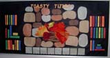 bulletin board By: Pam I bought a paper table cloth that had a race track theme around the border ( black and white checkered). I cut the border and assembled it to make a straight "track" and laminated it. Then, I used the dye-cut machine to cut out little cars and put each students picture and name on the car along with his/her favorite number. I sectioned off the track with red lines, and each section represents a certain number of books read ( 10, 20, 30, etc.) As the kids pass the AR tests, they advance down the track. I moved everyone's cars on Friday after school, and they look forward to seeing how far their car moved on Monday morning. I titled the track "AR Speedway". If a student reached 100 books, I purchased a $5 trophy with his/her name on it from the trophy shop. Well worth the money!!!