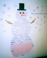 winter theme reading bulletin board By: sukie Draw or make a big snowman with long arms holding a book in front as if he's reading. The title is "There's Snow Better Time to Read". Add some snowflakes and some examples of children's written responses to literature. The snowman I make has a cap on and a scarf and some glasses.