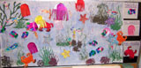 Sea Theme bulletin board By: Verlene I used a sea theme for my end of the year board last year and it was a lot of fun. For the beginning of the year you could purchase a bulletin board set at a school supply store or create one yourself with construction paper and/or paper plates to make the fish. With fish you can play on the term school of fish placing a fish for each child with their name on it, onto the board. Then you could take each child's picture and add it to the fish if you like. I used crepe paper streamers across the ceiling and bulletin boards to create an ocean feel. I had the students create and color several sea creatures which we added to scene as they completed them.